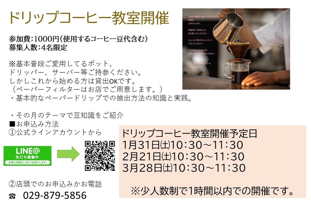 ☕ ドリップコーヒー教室 開催のお知らせ ☕