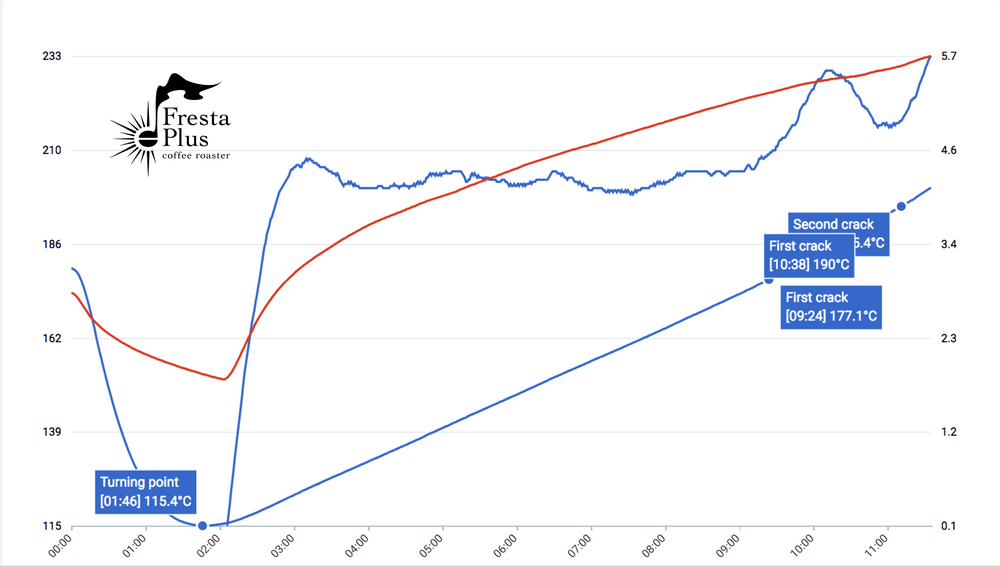 (焙煎機内の蓄熱が要因で1回目の焙煎と4回目の焙煎でも異なります。)