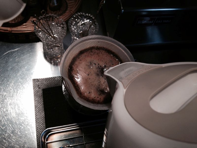 ポイントはお湯を細めに、くるっと円を描くように注ぐこと。