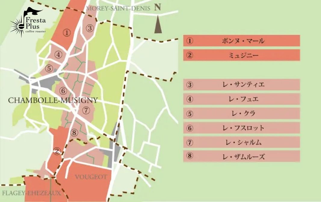※因みに今回の試飲販売会では⑧「レ・ザムルーズ」の次に人気の高いプルミエクリュ「レ・シャルム」が登場します。(↑地図の⑦)