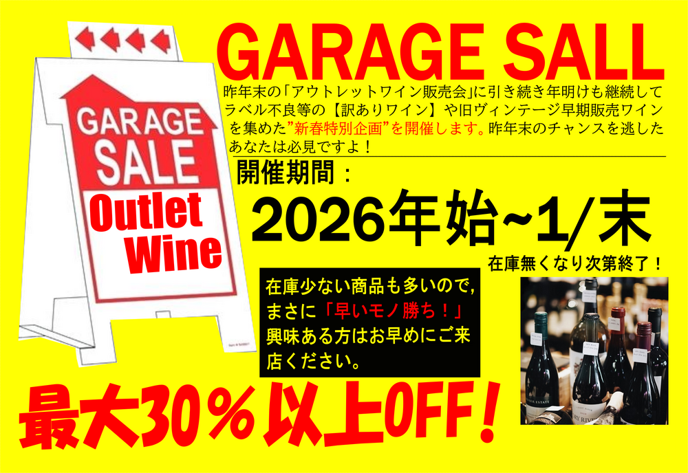 【今年もヤリます!】年に一度のワインガレージセール開催!限定30本・特別価格ワインのご案内