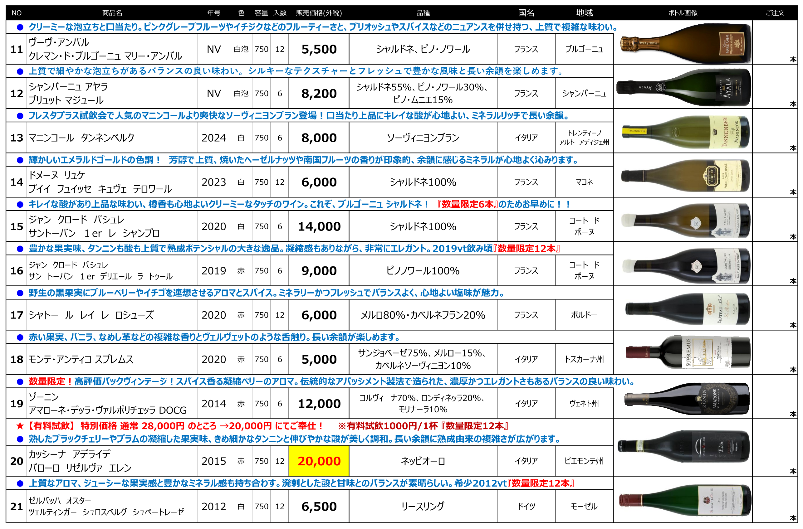 第42回ワイン試飲販売会ワインリスト完成!「スペシャルクラス」