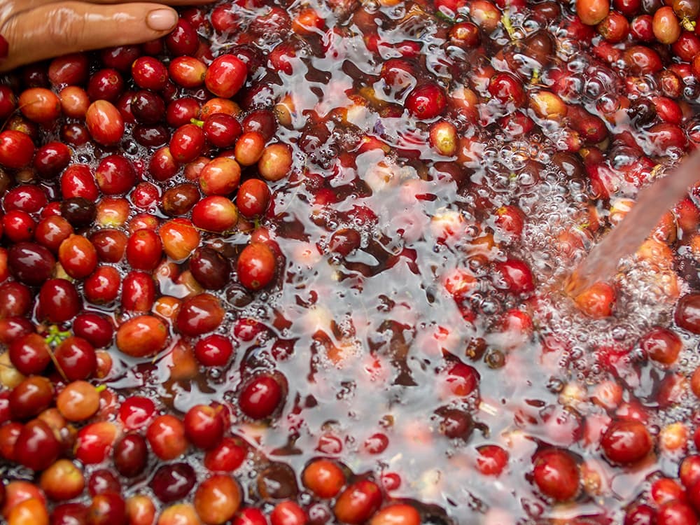コーヒーチェリーを酸素の少ない環境で発酵させることで、